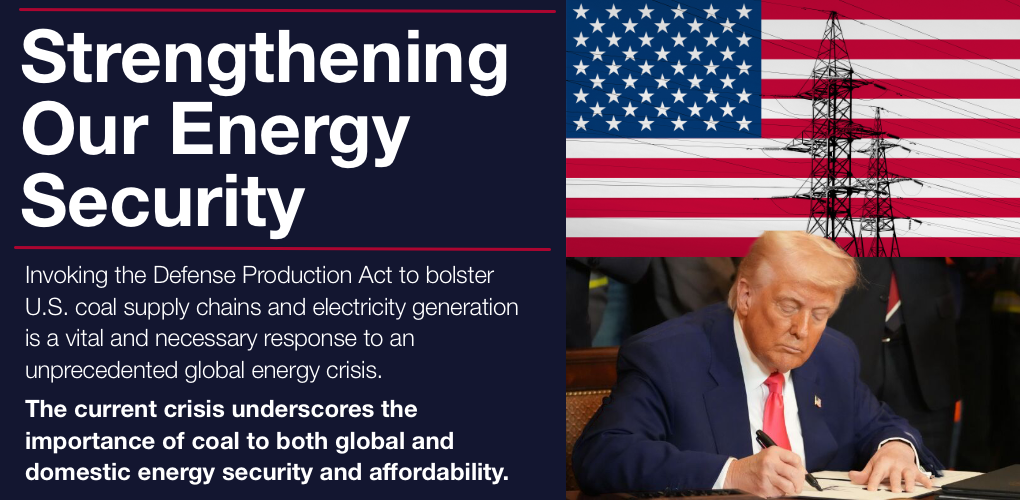 Consistent with that declaration, I find that ensuring reliable coal supply chains and baseload power generation capacity is essential to United States national defense. Coal mining and logistics, terminals, stockpile, and power generation facilities provide indispensable resilience to our power grids that cannot be replaced. Without sufficient coal-fired baseload power, the United States will lack the stable electricity required to support defense installations, industrial expansion, and the high-energy demands of emerging technologies, such as artificial intelligence.